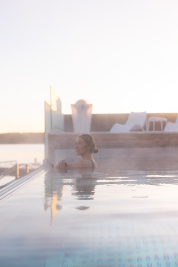 Lämmin infinity-allas ja ulkoporealtaat