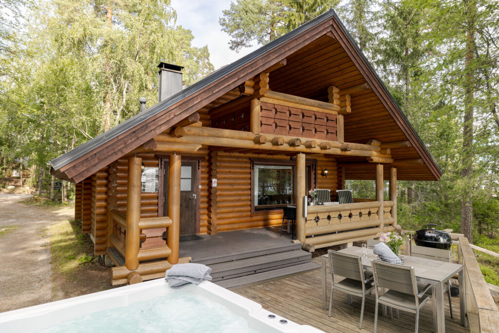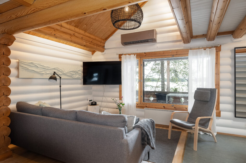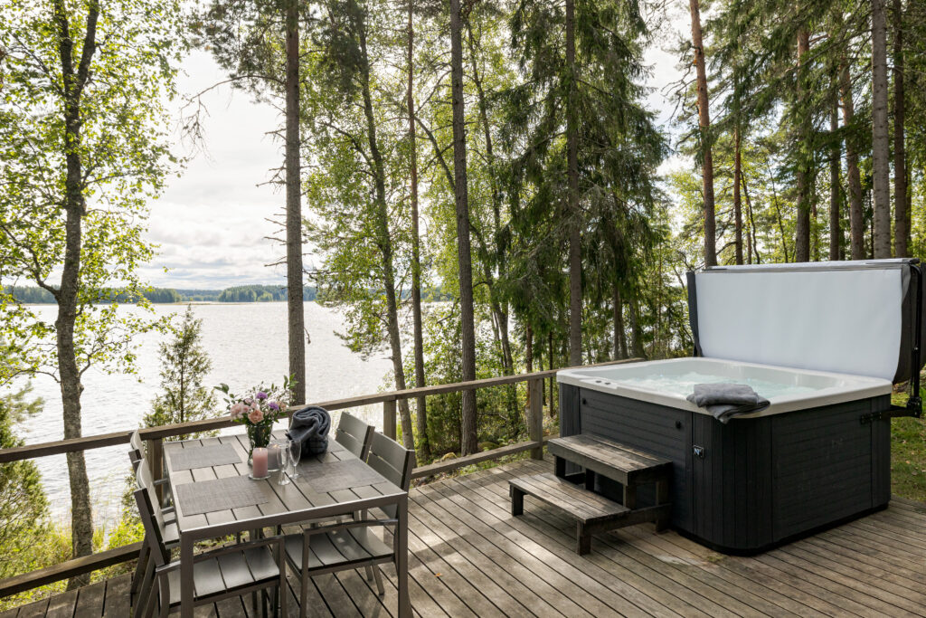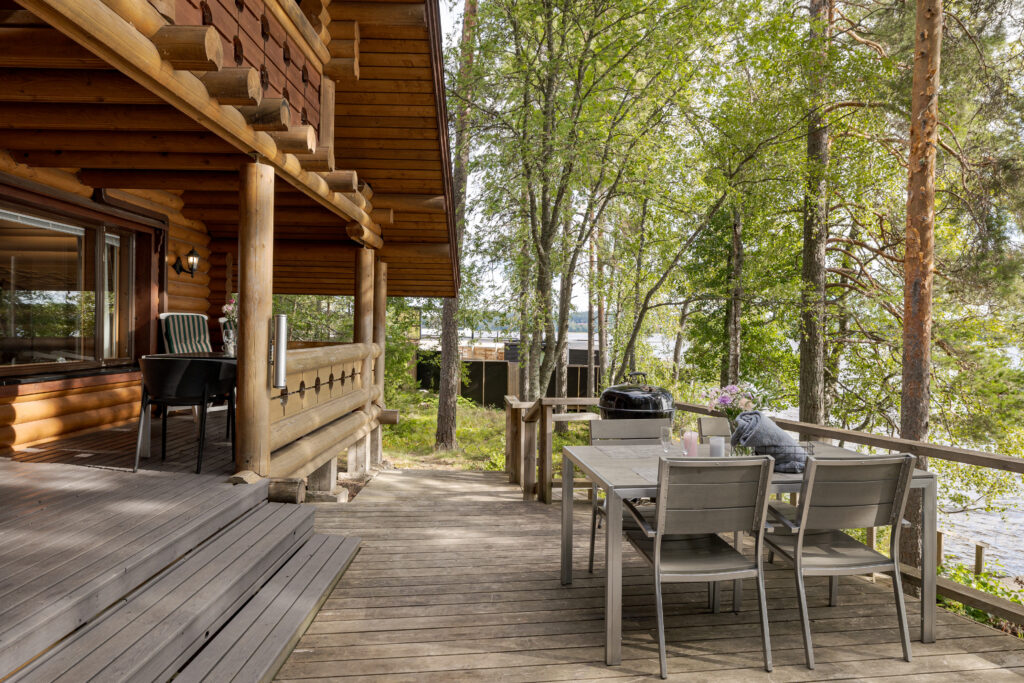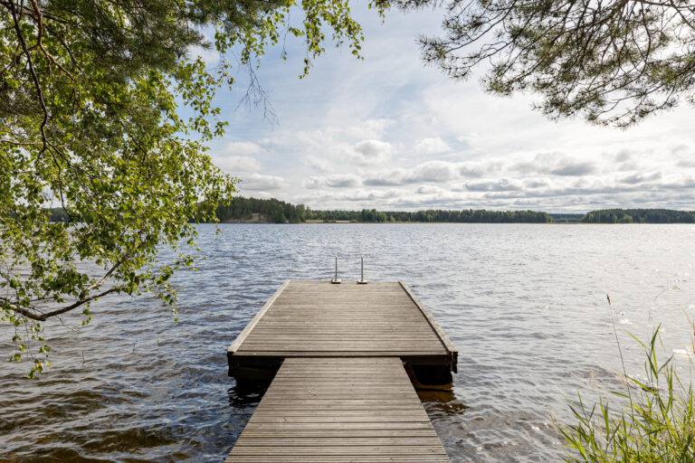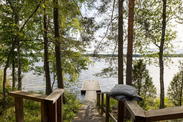 Villa 4 is located at the tip of a peninsula on the shore of Lake Päijänne, with its own dock and beach area.