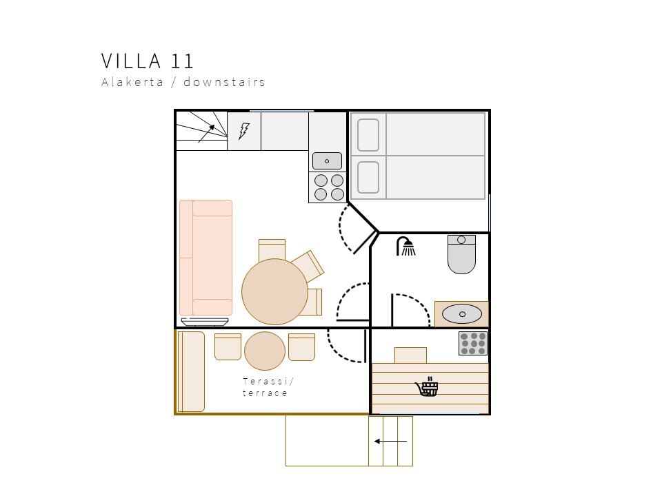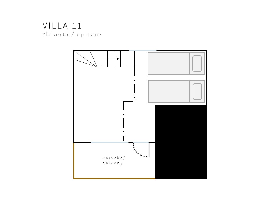 • Huvilasta löytyy 2 lisävuodetta eli runkopatjat. Lisävuoteet on mahdollista saada käyttöön pyydettäessä, varauksen teon yhteydessä. Lisävuoteet ovat yläkerran parvella.