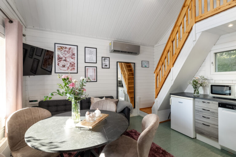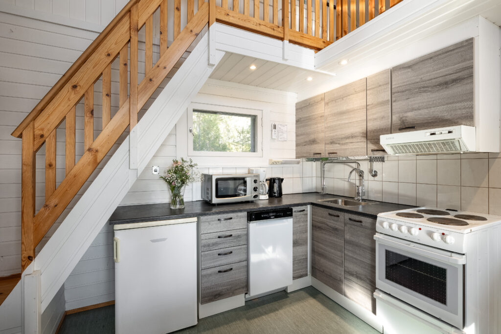-1 makuuhuone, parvi, olohuone, keittiö, 1 wc, kylpy- ja saunatilat